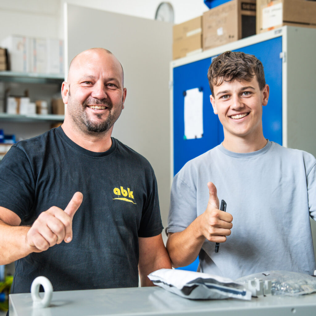 Bei abk Pressenbau erwartet dich mehr als nur ein Ausbildungsplatz. Wir fördern junge Talente mit echtem Praxisbezug, abwechslungsreichen Aufgaben und einem familiären Arbeitsumfeld. Unsere Ausbilder begleiten dich und sorgen dafür, dass du dich weiterentwickelst. Ob in der Fertigung, in der Konstruktion, in der Elektrotechnik oder im Büro – wir legen großen Wert darauf, dir eine vielseitige, fundierte und zukunftssichere Ausbildung zu bieten. Dabei steht für uns Teamgeist, gegenseitiger Respekt und der Spaß an der Arbeit im Mittelpunkt.
